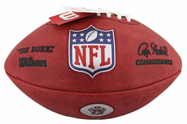 This Autographed Official Wilson "The Duke" 75th Anniversary Nfl Football has been Personally Signed by Fred Warner of the San Francisco 49ers. This item is 100% Authentic to include a hologram by Beckett Authentication Services. This item will come with an affixed Beckett Authentication Services (BAS) authentication sticker, which includes a scannable QR code to verify authenticity. Please note that Beckett no longer provides serial-numbered COA cards, and the attached BAS sticker will serve as the complete authentication for this item. This is a BAS Witnessed Protection Program item which means a Beckett Authentication Service representative was present when this item was being signed. We conducted an autograph signing with Fred Warner where multiples of the same item were signed. While the photographs are representative of this item, the size, placement and strength of the signature may vary. Each item is hand signed, therefore, each autograph is unique. This item can be verified through BAS Witnessed.