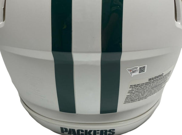 This Green Bay Packers white matte authentic speed helmet has been personally hand-signed by Aaron Rodgers. It is officially licensed by the National Football League and comes with an individually numbered, tamper-evident hologram from Fanatics Authentic. To ensure authenticity, the hologram can be reviewed online. This process helps to ensure that the product purchased is authentic and eliminates any possibility of duplication or fraud.The autograph includes an official Fanatics hologram and matching COA for authenticity purposes.Comes with a tamper-evident hologram from Fanatics AuthenticatedOfficially licensed by the NFL MONEY BACK GUARANTEE! If for any reason you are not completely satisfied with the quality or authenticity of your purchase, we will gladly give you a full refund or exchange, whichever you prefer up to 30 days after purchase. Please feel free to e-mail us with any questions. GOOD LUCK BIDDING!!! Authenticator Pre-Certified Authenticator: Fanatics Authenticated History of item: Aaron Rodgers has signed this item in the presence of a representative from Fanatics. Describe how you came to possess this item: Super Sports Center is a fully authorized dealer for Upper Deck Authenticated as well as Mounted Memories and Steiner Sports. Other information about you and / or the item: Super Sports Center strives to deliver the most authentic in sports memorabilia from trusted companies like Mounted Memories, Steiner Sports and Upper Deck Authenticated. If it exists, we can find it for you!