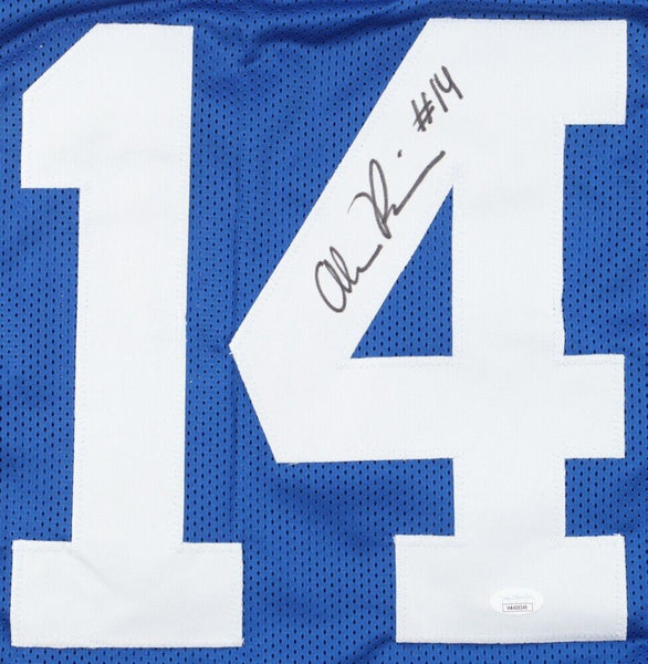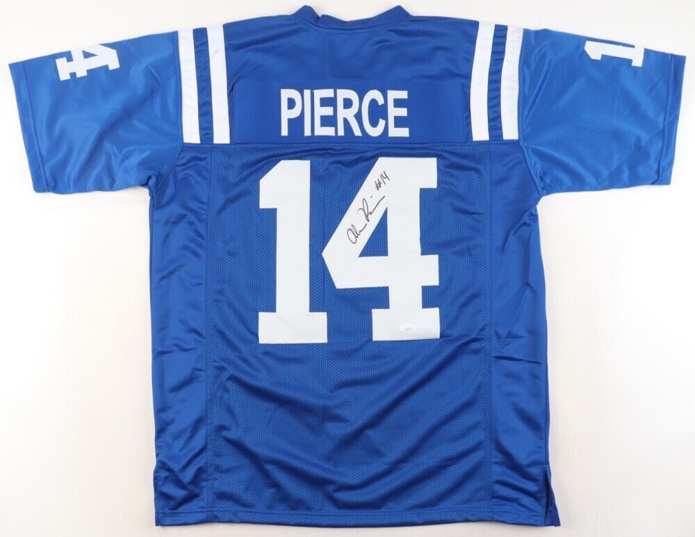 Custom on-field style adult XL jersey. has been personally hand-signed by Alec Pierce of the Indianapolis Colts.This autograph is certified by James Spence Authentication's (JSA) Witnessed Protection Program. That means that a JSA representative was present when this item was signed. It comes with the numbered hologram and QR Code card for Authenticity purposes.Custom on-field style jerseys are a more affordable option for autograph seekers. These jerseys do not have any brand name or tags and are made in the Philippines. They feature stitched on names and numbers and are made to look very similar to the on-field jerseys that the players wear. These custom jerseys are very commonly used in the memorabilia industry.