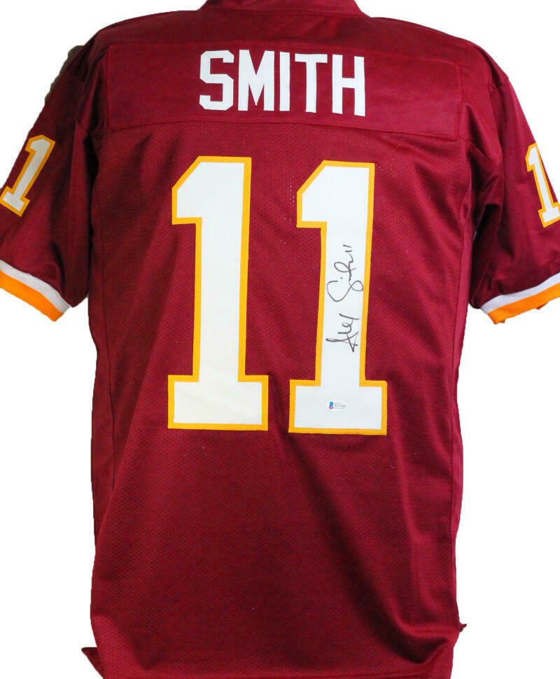 Alex Smith Autographed Maroon Pro Style Jersey- Beckett W *Black R1 THIS IS NOT AN NFL JERSEY. THIS HAS NO TAGS, NO LOGOS, NO EMBLEMS. This is a hand autographed Alex Smith custom made (Non Name Brand) authentic style jersey with stitched letters and numbers. This item has a Beckett Authentication, which comes with a numbered and a matching Certificate of Authenticity. You can view this item on the Beckett Authentication website. It was signed either at a public autograph appearance or a private signing. This is a stock photo of the item. Although you may not receive this exact item, the item you receive is virtually identical, brand new, and in great shape. Jersey size is XL.