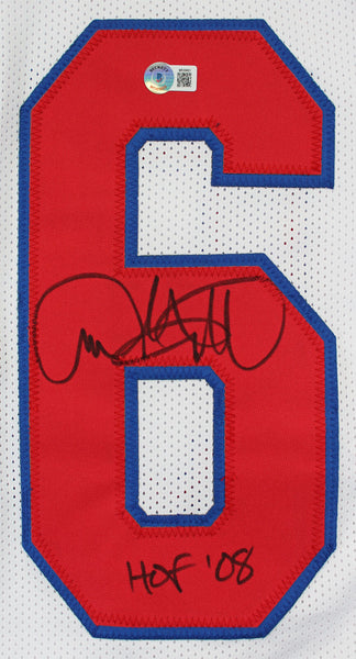 This Autographed White Pro Style Jersey with the inscription of "HOF 08" has been Personally Signed by Andre Tippett of the New England Patriots. This item is 100% Authentic to include a hologram by Beckett Authentication Services. This item will come with an affixed Beckett Authentication Services (BAS) authentication sticker, which includes a scannable QR code to verify authenticity. Please note that Beckett no longer provides serial-numbered COA cards, and the attached BAS sticker will serve as the complete authentication for this item. This is a BAS Witnessed Protection Program item which means a Beckett Authentication Service representative was present when this item was being signed. We conducted an autograph signing with Andre Tippett where multiples of the same item were signed. While the photographs are representative of this item, the size, placement and strength of the signature may vary. Each item is hand signed, therefore, each autograph is unique. This item can be verified through BAS Witnessed. This is a X-Large sized, non-branded, custom-stitched Jersey.