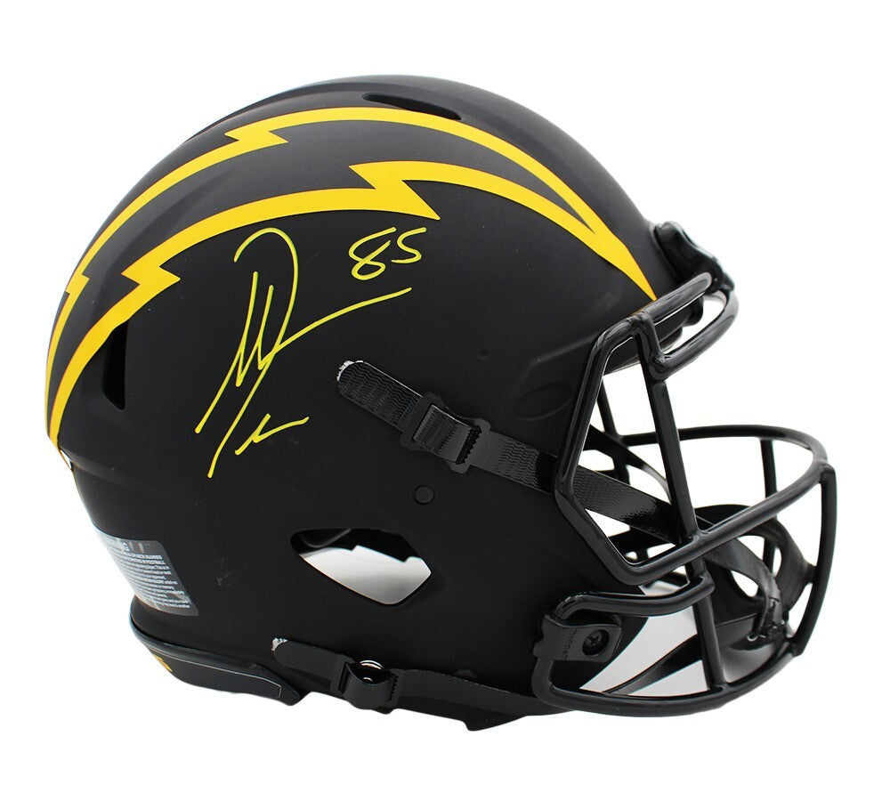 A Los Angeles Chargers Speed Authentic Eclipse NFL Helmet hand signed by Antonio Gates. The item and signature are in excellent condition. Antonio Gates is a tight end who has been selected into the Pro Bowl eight times and is a five-time All-Pro. AUTHENTICATION: The item has been tagged with a SmarTag powered by Prova Technology, which gives you digital access to the items authentication records, including a proof picture from the signing.