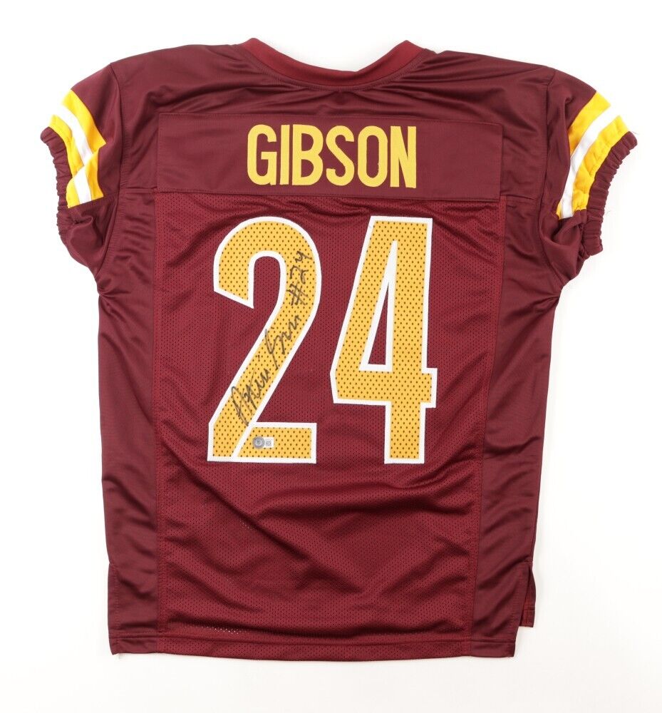 Custom on-field style jersey. Everything is sewn on, size XL. Hand-signed by Antonio Gibson.The autograph includes an official Beckett Authentication Services serially numbered hologram for authenticity purposes. The signing of this item was witnessed by Beckett.Authentication: Beckett Hologram