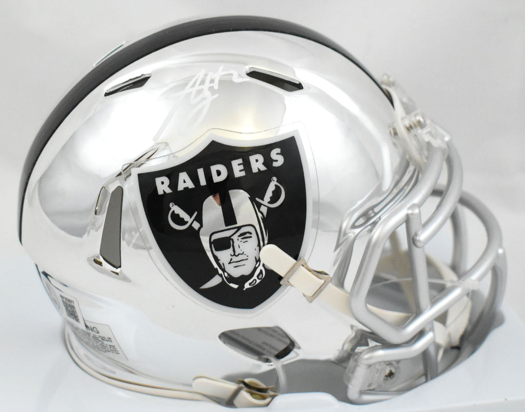 This is a hand autograph of Ashton Jeanty of the Las Vegas Raiders on a Riddell Football Chrome Speed Mini Helmet. This item has a Beckett Witnessed Authentication, which comes with a numbered hologram and a QR code for verification. You can view this item on the Beckett Authentication website, and it shows when and where the item was signed. It was signed either at a public autograph appearance or a private signing. This is a stock photo of the item. Although you may not receive this exact item, the item you receive is virtually identical and brand new in great shape. This is a hand autograph of Ashton Jeanty of the Las Vegas Raiders on a Riddell Football Chrome Speed Mini Helmet. This item has a Beckett Witnessed Authentication, which comes with a numbered hologram and a QR code for verification. You can view this item on the Beckett Authentication website, and it shows when and where the item was signed. It was signed either at a public autograph appearance or a private signing. This is a stock photo of the item. Although you may not receive this exact item, the item you receive is virtually identical and brand new in great shape.