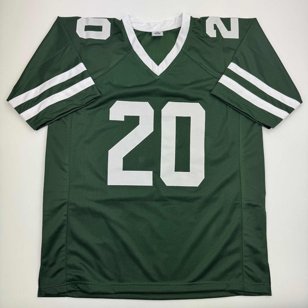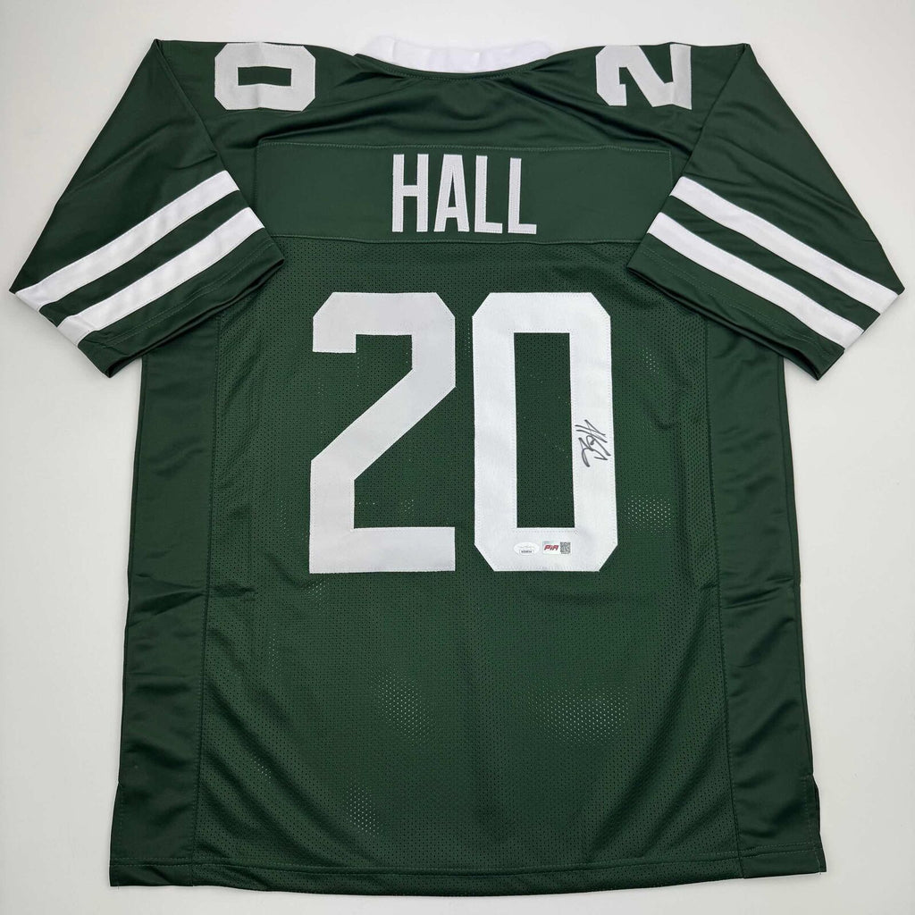 Autographed/Signed Breece Hall New York Green Football Jersey JSA COA Jersey has no brand names or logos. This is a custom jersey and was not manufactured by or in any manner associated with any professional sports league or manufacturer. This custom jersey carries no professional sports league designation. The item is intended to be an autographed collectible. The custom jersey displays the name and number of the player. This item in no way is affiliated with or connected to any professional sports organization. Size is XL.