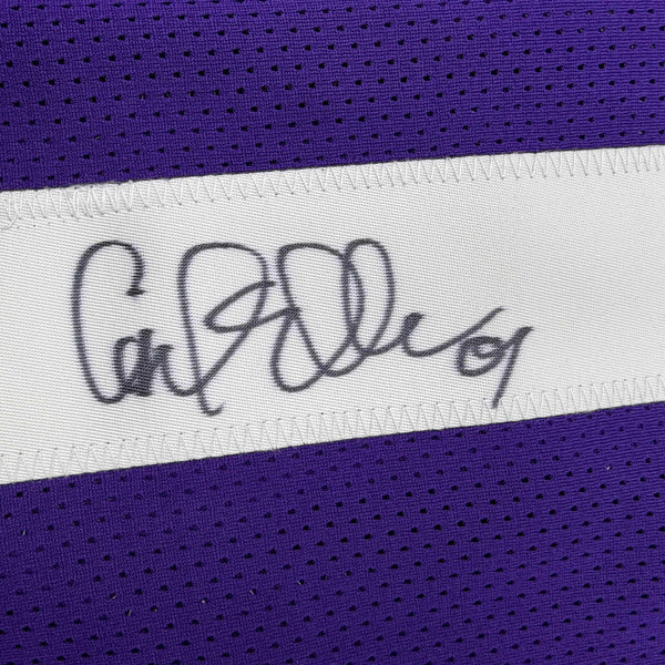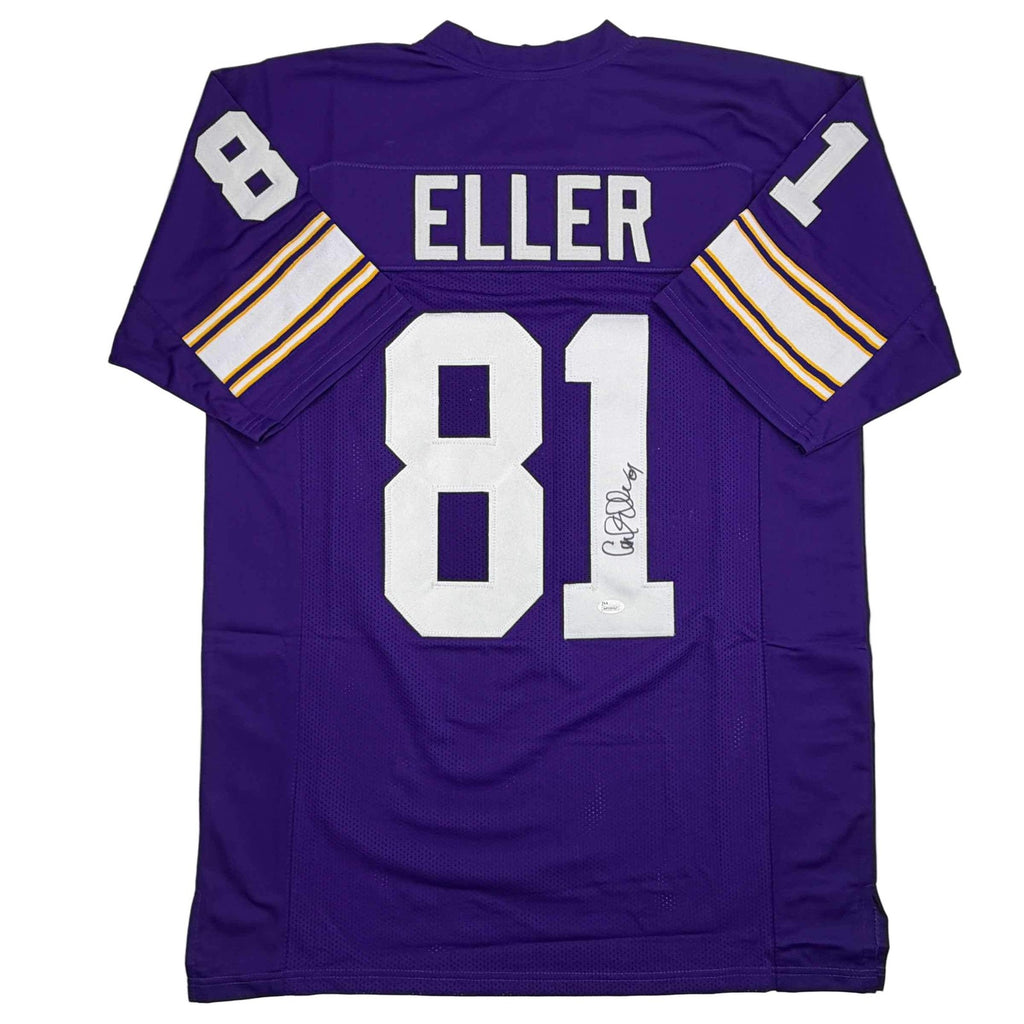 Autographed/Signed Carl Eller Minnesota Purple Football Jersey JSA COA Jersey has no brand names or logos. This is a custom jersey and was not manufactured by or in any manner associated with any professional sports league or manufacturer. This custom jersey carries no professional sports league designation. The item is intended to be an autographed collectible. The custom jersey displays the name and number of the player. This item in no way is affiliated with or connected to any professional sports organization. Size is XL.