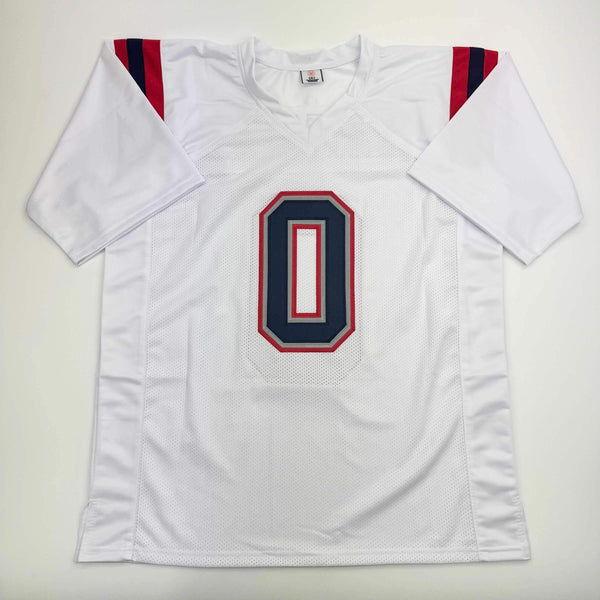 Autographed/Signed Christian Gonzalez New England White Football Jersey BAS COA Jersey has no brand names or logos. This is a custom jersey and was not manufactured by or in any manner associated with any professional sports league or manufacturer. This custom jersey carries no professional sports league designation. The item is intended to be an autographed collectible. The custom jersey displays the name and number of the player. This item in no way is affiliated with or connected to any professional sports organization. Size is XL.