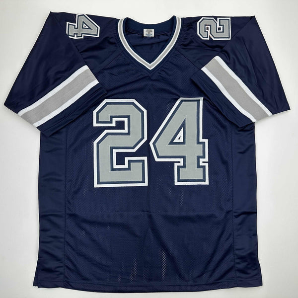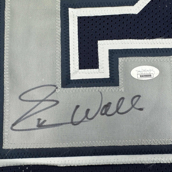 Autographed/Signed Everson Walls Dallas Blue Football Jersey JSA COA Jersey has no brand names or logos. This is a custom jersey and was not manufactured by or in any manner associated with any professional sports league or manufacturer. This custom jersey carries no professional sports league designation. The item is intended to be an autographed collectible. The custom jersey displays the name and number of the player. This item in no way is affiliated with or connected to any professional sports organization. Size is XL.