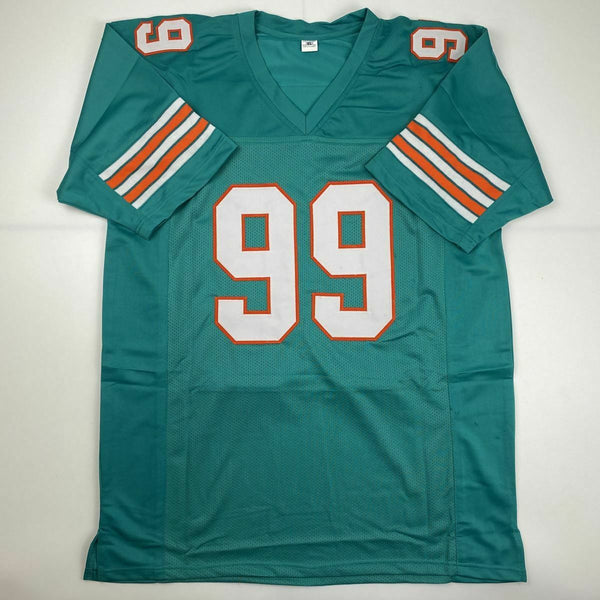Autographed/Signed JASON TAYLOR Miami Teal Football Jersey JSA COA Auto This is a custom jersey and was not manufactured by or in any manner associated with any professional sports league or manufacturer. This custom jersey carries no professional sports league designation. The item is intended to be an autographed collectible. Reference of team in the title is to allow the purchaser a point of association. The custom jersey displays the name, number and authenticated signature of the player. This item in no way is affiliated with or connected to any professional sports organization. The autograph, as always is guaranteed to be authentic and has been certified as authentic by a third-party, trusted authenticator. Size is XL unless otherwise noted.