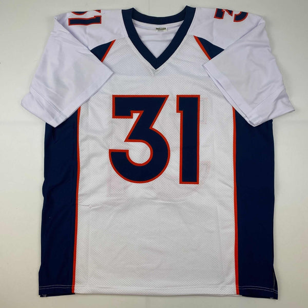 Autographed/Signed Justin Simmons Denver White Football Jersey JSA COA