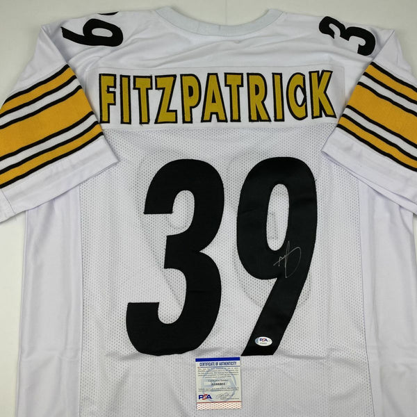 Autographed/Signed MINKAH FITZPATRICK Pittsburgh White Football Jersey PSA COA This is a custom jersey and was not manufactured by or in any manner associated with any professional sports league or manufacturer. This custom jersey carries no professional sports league designation. The item is intended to be an autographed collectible. The custom jersey displays the name, number and authenticated signature of the player. This item in no way is affiliated with or connected to any professional sports organization. The autograph, as always is guaranteed to be authentic and has been certified as authentic by a third-party, trusted authenticator. Size is XL unless otherwise noted.