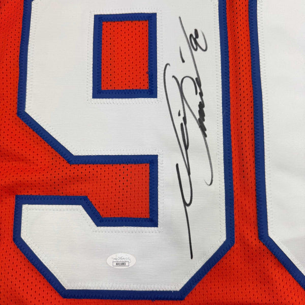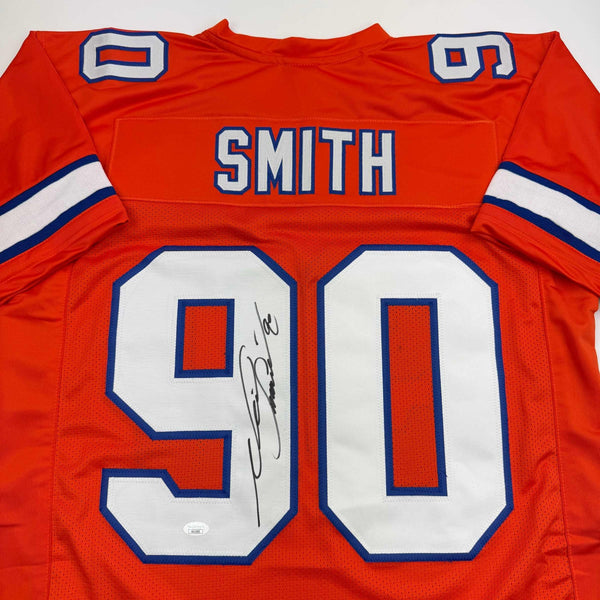 Autographed/Signed Neil Smith Denver Retro Orange Football Jersey JSA COA Jersey has no brand names or logos. This is a custom jersey and was not manufactured by or in any manner associated with any professional sports league or manufacturer. This custom jersey carries no professional sports league designation. The item is intended to be an autographed collectible. The custom jersey displays the name and number of the player. This item in no way is affiliated with or connected to any professional sports organization. Size is XL.