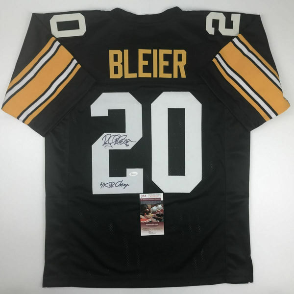 Autographed/Signed ROCKY BLEIER 4x SB Champ Black Pittsburgh Jersey JSA COA Auto This is a custom jersey and was not manufactured by or in any manner associated with any professional sports league or manufacturer. This custom jersey carries no professional sports league designation. The item is intended to be an autographed collectible. Reference of team in the title is to allow the purchaser a point of association. The custom jersey displays the name, number and authenticated signature of the player. This item in no way is affiliated with or connected to any professional sports organization. The autograph, as always is guaranteed to be authentic and has been certified as authentic by a third-party, trusted authenticator. Size is XL unless otherwise noted.