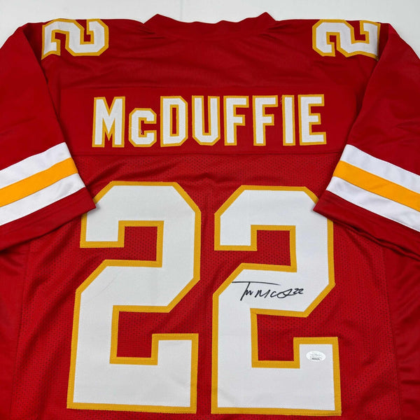 Autographed/Signed Trent McDuffie Kansas City Red Football Jersey JSA COA Jersey has no brand names or logos. This is a custom jersey and was not manufactured by or in any manner associated with any professional sports league or manufacturer. This custom jersey carries no professional sports league designation. The item is intended to be an autographed collectible. The custom jersey displays the name and number of the player. This item in no way is affiliated with or connected to any professional sports organization. Size is XL