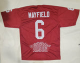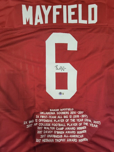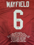 BAKER MAYFIELD AUTOGRAPHED SIGNED COLLEGE STYLE CUSTOM XL STAT JERSEY WITH BECKETT QR HOLOGRAM ONLY
