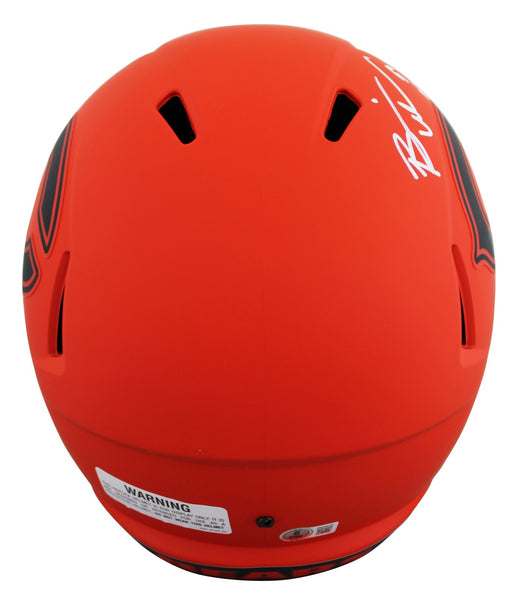 This Autographed Alternate Rave Riddell Full Size Speed Rep Helmet W/ Uv Mirrored Back Acrylic Display Case with the inscription of "HOF 18" has been Personally Signed by Brian Urlacher of the Chicago Bears. This item is 100% Authentic to include a hologram by Beckett Authentication Services. This item will come with an affixed Beckett Authentication Services (BAS) authentication sticker, which includes a scannable QR code to verify authenticity. Please note that Beckett no longer provides serial-numbered COA cards, and the attached BAS sticker will serve as the complete authentication for this item. This is a BAS Witnessed Protection Program item which means a Beckett Authentication Service representative was present when this item was being signed. We conducted an autograph signing with Brian Urlacher where multiples of the same item were signed. While the photographs are representative of this item, the size, placement and strength of the signature may vary. Each item is hand signed, therefore, each autograph is unique. This item can be verified through BAS Witnessed.