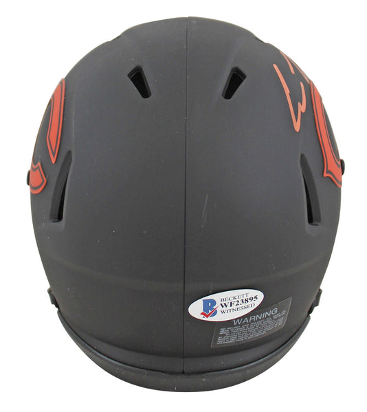 This Autographed Alternate Eclipse Speed Mini Helmet has been Personally Signed by Cole Kmet of the Chicago Bears. This item is 100% Authentic to include a hologram by Beckett Authentication Services. This item may come with the new Beckett Authentication hologram that has a scannable QR code rather than the traditional COA. If you would like to have a COA, you are welcome to reach out to Beckett for a printed certification once you receive your item. This is a BAS Witnessed Protection Program item which means a Beckett Authentication Service representative was present when this item was being signed. This is a stock item. We conducted an autograph signing with Cole Kmet and we have several of these available. The one you will receive will be of equal quality to the one pictured. This item can be verified through BAS Witnessed.