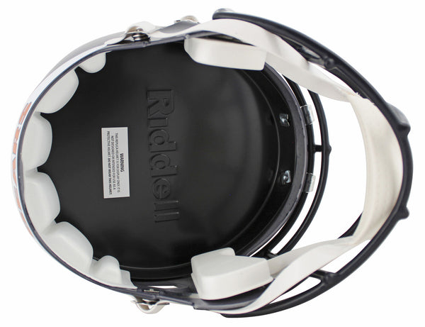 This Autographed Riddell Full Size Speed Rep Helmet with the inscription of "HOF 98" has been Personally Signed by Mike Singletary of the Chicago Bears. This item is 100% Authentic to include a hologram by Beckett Authentication Services. This item will come with an affixed Beckett Authentication Services (BAS) authentication sticker, which includes a scannable QR code to verify authenticity. Please note that Beckett no longer provides serial-numbered COA cards, and the attached BAS sticker will serve as the complete authentication for this item. This is a BAS Witnessed Protection Program item which means a Beckett Authentication Service representative was present when this item was being signed. We conducted an autograph signing with Mike Singletary where multiples of the same item were signed. While the photographs are representative of this item, the size, placement and strength of the signature may vary. Each item is hand signed, therefore, each autograph is unique. This item can be verified through BAS Witnessed.