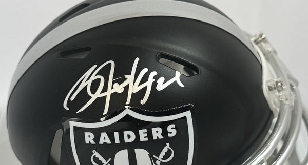 This is a hand autograph of Bo Jackson who played for the Raiders on a Riddell Football Speed Mini Helmet. This item has a Beckett Witnessed Authentication, which comes with a numbered sticker and a matching card with a code for verification. You can view this item on the Beckett Authentication website, and it shows when and where the item was signed. It was signed either at a public autograph appearance or a private signing. This is a stock photo of the item. Although you may not receive this exact item, the item you receive is virtually identical and brand new in great shape. This is a hand autograph of Bo Jackson who played for the Raiders on a Riddell Football Speed Mini Helmet. This item has a Beckett Witnessed Authentication, which comes with a numbered sticker and a matching card with a code for verification. You can view this item on the Beckett Authentication website, and it shows when and where the item was signed. It was signed either at a public autograph appearance or a private signing. This is a stock photo of the item. Although you may not receive this exact item, the item you receive is virtually identical and brand new in great shape.