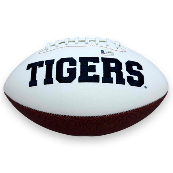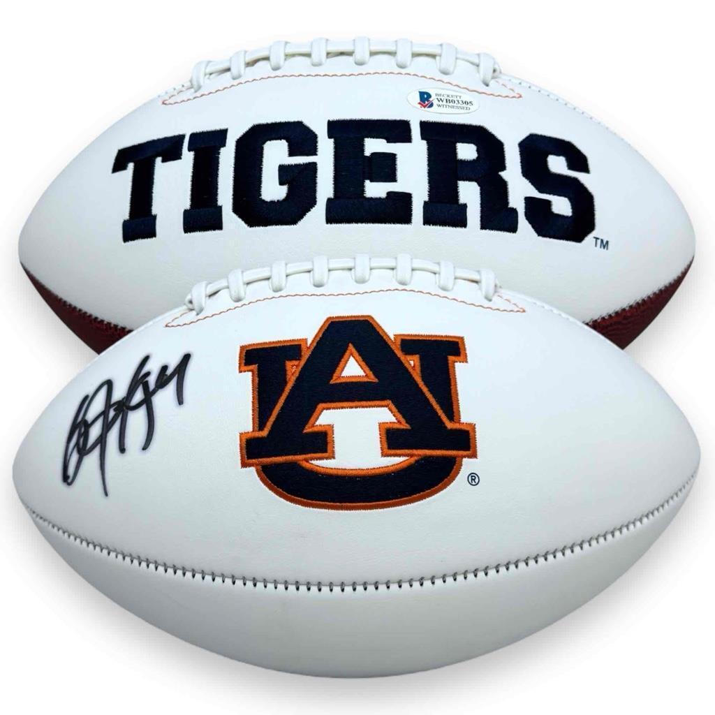 ATHLETE: Bo Jackson ITEM: Auburn Tigers Logo Football AUTHENTICATION: This item comes with a Beckett serial #'ed sticker affixed to the item. To ensure authenticity, the hologram can be reviewed online. This process helps to ensure that the product purchased is authentic and eliminates any possibility of duplication or fraud. You will receive the exact ball pictured.