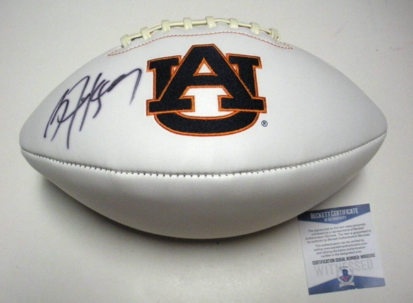 ATHLETE: Bo Jackson ITEM: Auburn Tigers Logo Football AUTHENTICATION: This item comes with a Beckett serial #'ed sticker affixed to the item. To ensure authenticity, the hologram can be reviewed online. This process helps to ensure that the product purchased is authentic and eliminates any possibility of duplication or fraud. You will receive the exact ball pictured.