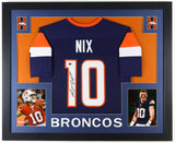 Custom frame measures 35" x 43" in size and features a jersey hand-signed by Bo Nix.The lot / autograph(s) includes an official Beckett Authentication Services serially-numbered hologram and QR Code Card for authenticity purposes. The signing of this item was witnessed by Beckett.Authentication: Beckett Hologram & QR Code card