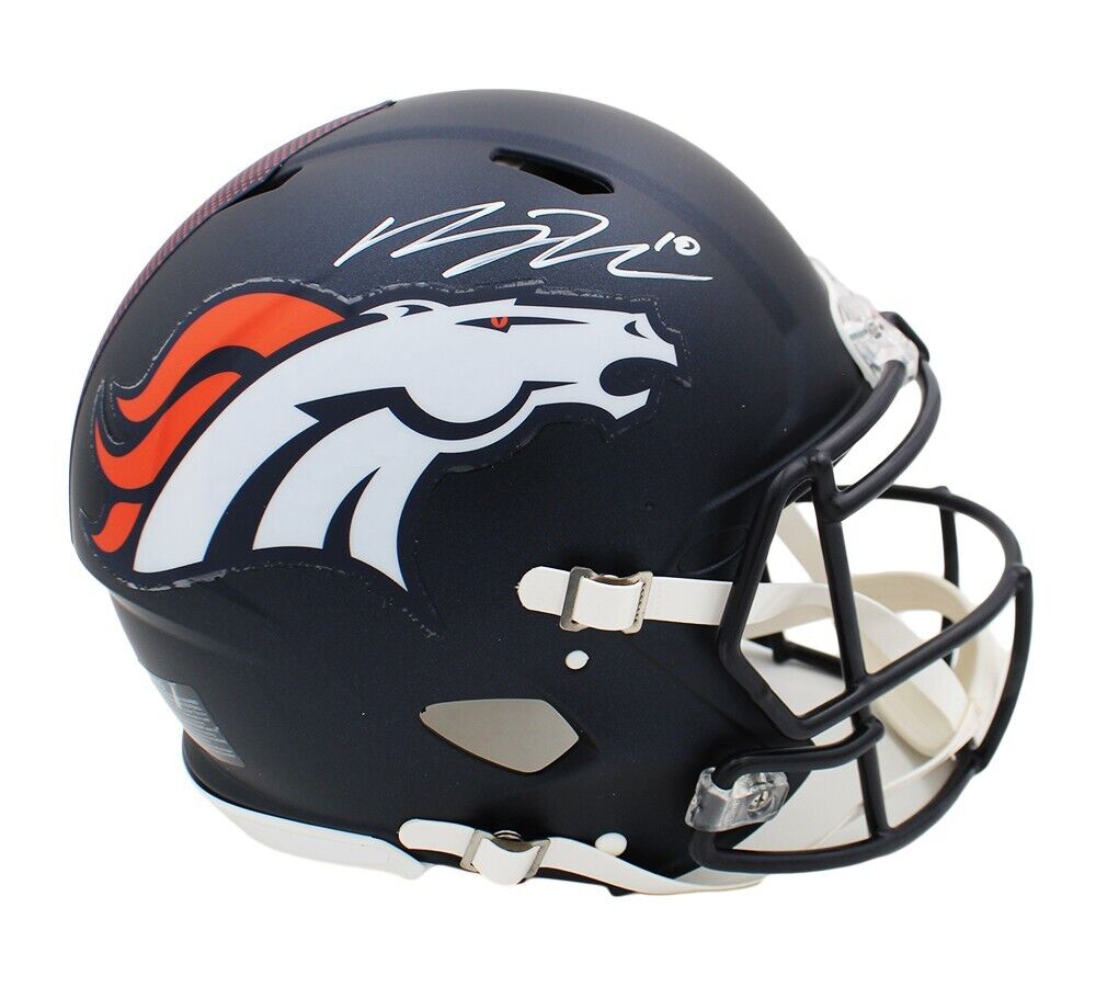 A Denver Broncos Speed Authentic 2024 NFL Helmet hand signed by Bo Nix. The item and signature are in excellent condition. Bo Nix is an American quarterback in the NFL. After a standout senior season for the Oregon Ducks, Bo was selected 12th overall in the 2024 NFL Draft. AUTHENTICATION: The item is accompanied by a Beckett Serial Numbered and Databased Hologram.