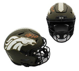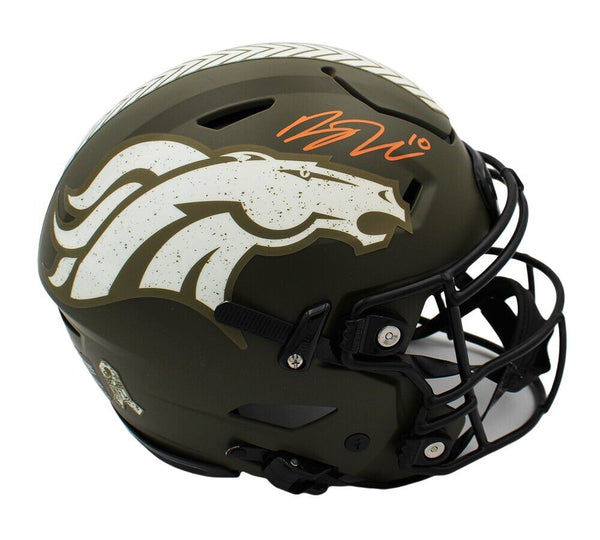 A Denver Broncos Speed Flex Authentic Salute to Service NFL Helmet hand signed by Bo Nix. The item and signature are in excellent condition. Bo Nix is an American quarterback in the NFL. After a standout senior season for the Oregon Ducks, Bo was selected 12th overall in the 2024 NFL Draft. AUTHENTICATION: The item is accompanied by a Beckett Serial Numbered and Databased Hologram.