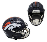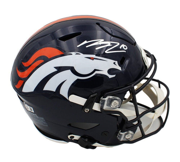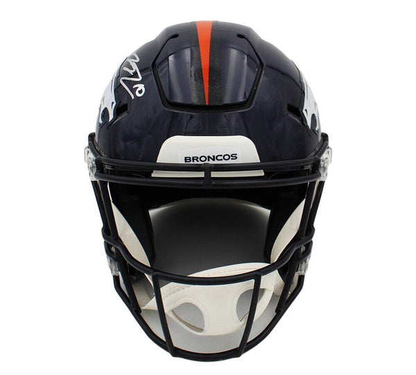 A Denver Broncos Speed Flex Authentic NFL Helmet hand signed by Bo Nix. The item and signature are in excellent condition. Bo Nix is an American quarterback in the NFL. After a standout senior season for the Oregon Ducks, Bo was selected 12th overall in the 2024 NFL Draft. AUTHENTICATION: The item is accompanied by a Beckett Serial Numbered and Databased Hologram.