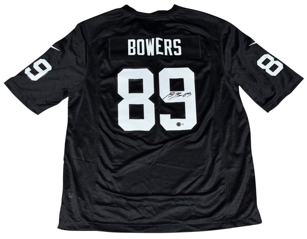 Brock Bowers, All-Pro tight end for the Las Vegas Raiders, has hand signed this Nike replica jersey at a private signing. Jersey is new with tags attached and all letters/numbers are screen print. This item is authenticated by Beckett Authentication Services and was signed in the presence of one of their representatives. Their tamper-evident hologram featuring a QR code and serial number is on the item. The authenticity can be verified online by entering the serial number or scanning the QR code. Item pictured may not be the exact item you will receive. It will be similar quality, and we guarantee your satisfaction.