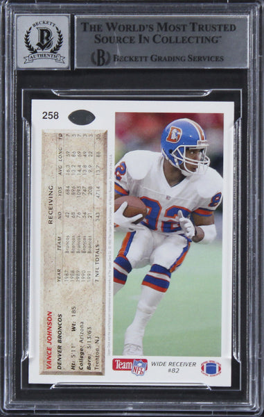 Broncos Vance Johnson Signed 1992 Upper Deck #258 Card Auto 10! BAS Slabbed