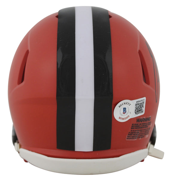 This Autographed Speed Mini Helmet has been Personally Signed by Jeremiah Owusu-Koramoah of the Cleveland Browns. This item is 100% Authentic to include a hologram by Beckett Authentication Services. This item will come with the new Beckett Authentication hologram that has a scannable QR code rather than the traditional COA. If you would like to have a COA, you are welcome to reach out to Beckett for a printed certification once you receive your item. This is a BAS Witnessed Protection Program item which means a Beckett Authentication Service representative was present when this item was being signed. The authenticity can be verified on Beckett Authentication Services website.