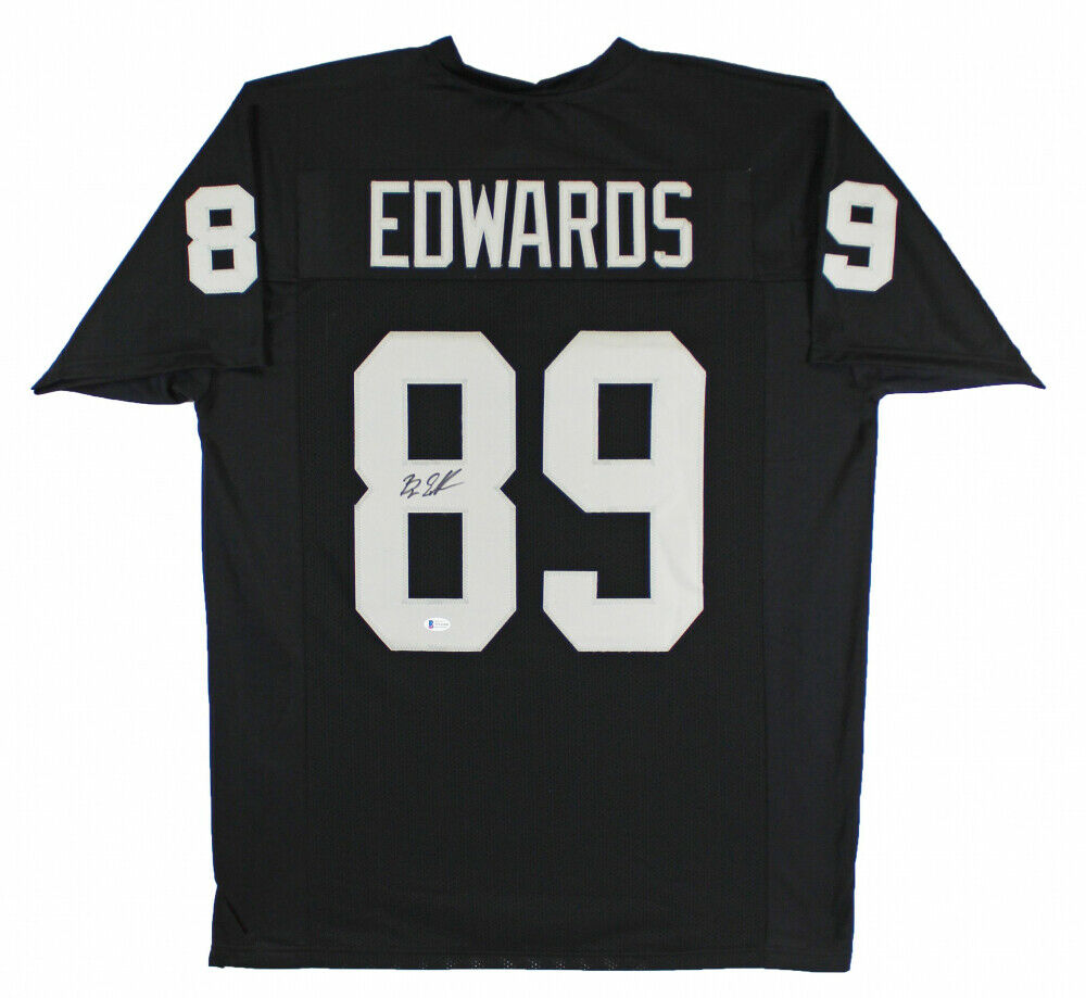 Custom on-field style jersey. Everything is sewn on, size XL. Hand-signed in black Sharpie by Bryan Edwards . The autograph includes an official James Spence Authentication (JSA) hologram and matching COA for authenticity purposes. The signing of this item was witnessed by JSA.Authentication: JSA COA