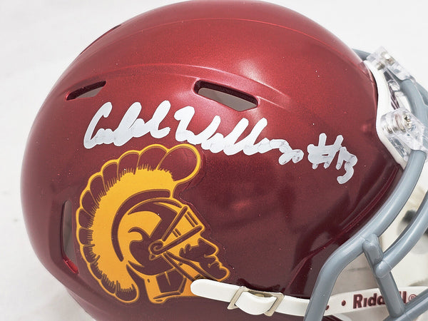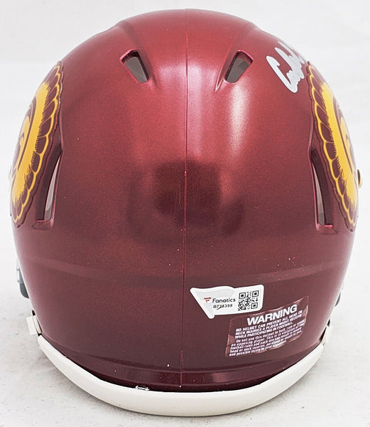 This is an USC Trojans Red Speed Mini Helmet that has been hand signed by Caleb Williams. This item has been certified authentic by Fanatics and comes with their tamper-proof sticker.
