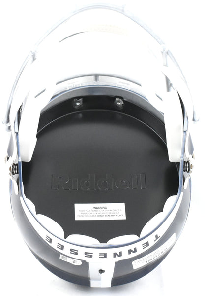 This is a Calvin Ridley of the Tennessee Titans Autographed Riddell football full size Speed Replica helmet. This item has a Beckett Witnessed Authentication, which comes with a numbered hologram and a QR code for verification. You can view this item on the Beckett Authentication website and it shows when and where the item was signed. It was signed either at a public autograph appearance or a private signing. This is a stock photo of the item. Although you may not receive this exact item, the item you receive is virtually identical, brand new, and in great shape. *Autograph location may vary* This is a Calvin Ridley of the Tennessee Titans Autographed Riddell football full size Speed Replica helmet. This item has a Beckett Witnessed Authentication, which comes with a numbered hologram and a QR code for verification. You can view this item on the Beckett Authentication website and it shows when and where the item was signed. It was signed either at a public autograph appearance or a private signing. This is a stock photo of the item. Although you may not receive this exact item, the item you receive is virtually identical, brand new, and in great shape. *Autograph location may vary*