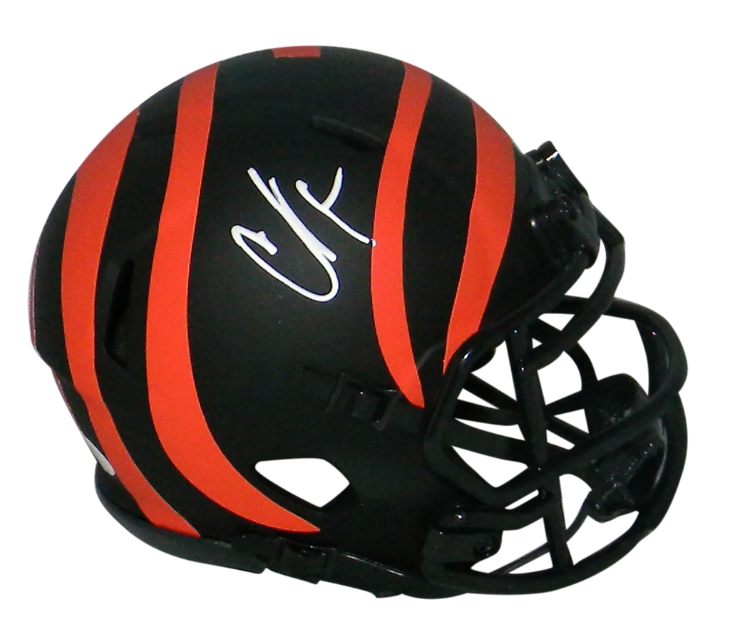 Chad Johnson, former Pro Bowl wide receiver for the Cincinnati Bengals, has hand signed this Bengals Riddell Speed Eclipse mini helmet at a private signing. This item comes with a certificate of authenticity (COA) from JSA - James Spence Authentication and was signed in the presence of one of their representatives. You will receive a serial-numbered COA along with a matching serial-numbered sticker on the helmet. The authenticity can be verified online by entering the serial number.Item pictured may not be the exact item you will receive. It will be similar quality, and we guarantee your satisfaction.