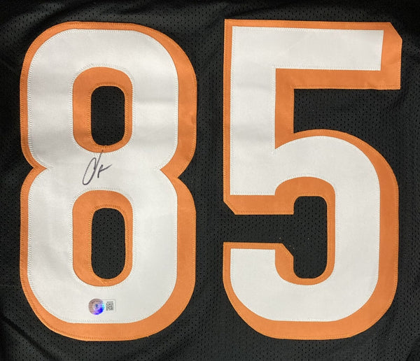 Featured is a Chad Johnson signed custom football jersey. This jersey has been hand signed by Johnson and comes with the Beckett witnessed hologram and certificate of authenticity. This jersey features professionally sewn letters and are size XL. This jersey has no team tags or emblems and are intended as a sports collectible. This jersey would make a great addition to any sports memorabilia collection! SPECIFICATIONS Autographed By: Chad Johnson Team: Cincinnati Bengals Sport: Football Authentication: Beckett Grading Services