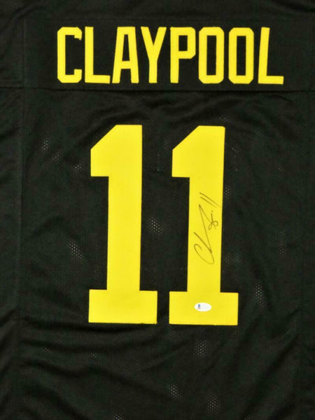 Chase Claypool Autographed Black Color Rush Pro Style Jersey-Beckett W*Black *R1 THIS IS NOT AN NFL JERSEY. THIS HAS NO TAGS, NO LOGOS, NO EMBLEMS. This is a Chase Claypool of the Pittsburgh Steelers hand autographed custom made (non name brand) authentic style (stitched letters and numbers) jersey. This item has a Beckett Witnessed Authentication, which comes with a numbered and a matching Beckett Certificate of Authenticity. You can view this item on the Beckett Authentication website. It was signed either at a public autograph appearance or a private signing. This is a stock photo of the item. Although you may not receive this exact item, the item you receive is virtually identical, brand new, and in great shape. Jersey size is XL.