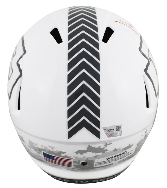 This Autographed Alternate Salute To Service III Riddell Full Size Speed Rep Helmet has been Personally Signed by Xavier Worthy of the Kansas City Chiefs. This item is 100% Authentic to includes a numbered hologram by Fanatics. We conducted an autograph signing with Xavier Worthy where multiples of the same item were signed. While the photographs are representative of this item, the size, placement and strength of the signature may vary. Each item is hand signed, therefore, each autograph is unique. This item can be verified through Fanatics.