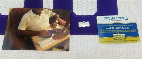 Custom on-field style jersey. Everything is sewn on, size XL. Hand-signed in black felt-tip pen by Chris Doleman. The lot / autograph(s) includes an official Radtke Sports hologram and matching COA for authenticity purposes. Also includes a proof picture from the signing.Authentication: Radtke COA