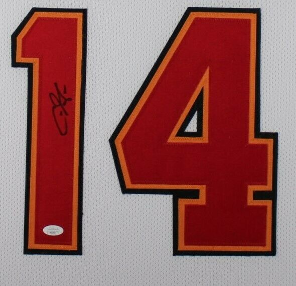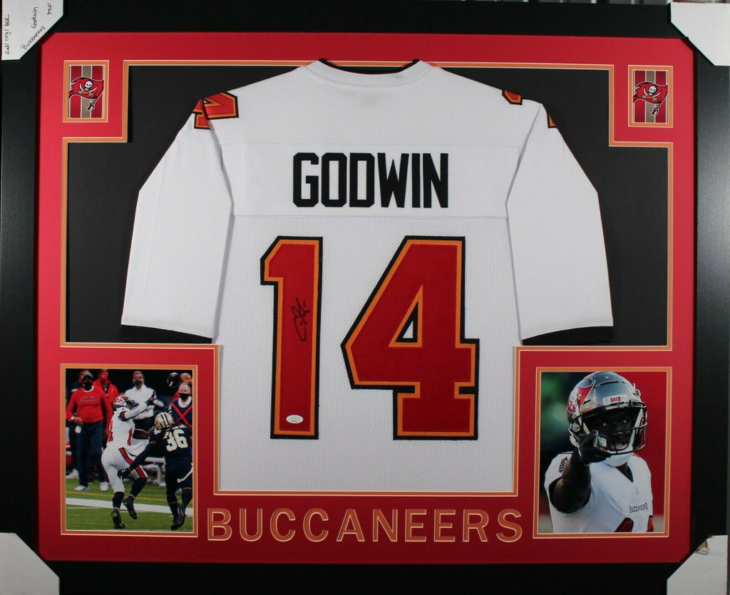 CHRIS GODWIN AUTOGRAPHED & PROFESSIONALLY FRAMED PRO-STYLE JERSEY(Occasionally our own stock pictures are used at times due to quantity of framing, all frames will look identical as the one pictured)Item is accompanied with a Certificate of Authenticity issued by JSA and corresponding tamper proof hologram on the jersey. THE FRAMED JERSEY MEASURES 35"x 44" & COMES WITH THE FOLLOWING:-UV Protected Acrylic-Triple Acid Free Team Colored Matting-2 High Quality 8"x10" Photos-Team Logo