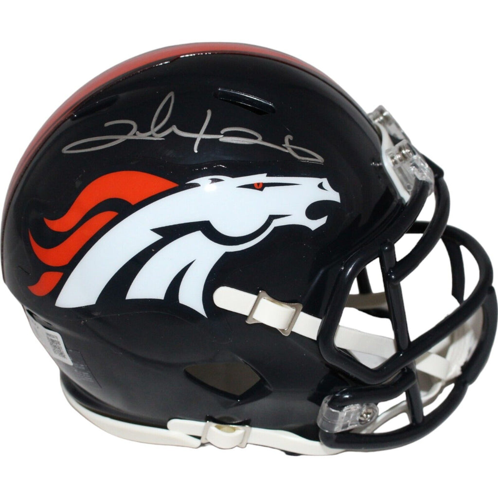 Clinton Portis Autographed Denver Broncos Mini Helmet Beckett 42805 The number in the listing title is just an inventory sku for our records and is not the authentication number. The item pictured is a stock photo unless otherwise noted. This is a Denver Broncos Mini Helmet that was personally autographed by Clinton Portis. Includes a certificate of authenticity from Beckett Authentication Services (BAS) and Denver Autographs.