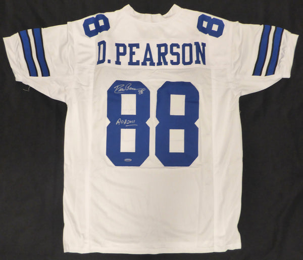 This is a White Jersey that has been hand signed by Drew Pearson. This is a custom jersey with no name brand. The approximate size is XL. It has nice sewn in name and numbers. This item was inscribed "ROH 2011." This item has been certified authentic by TriStar and comes with their tamper-proof sticker and matching certificate of authenticity.