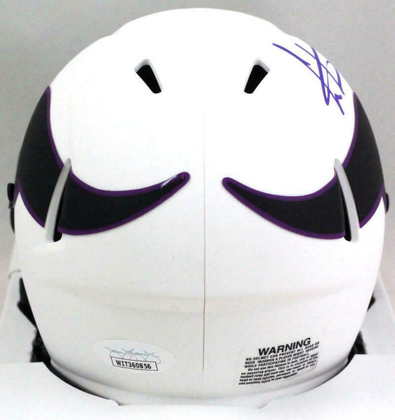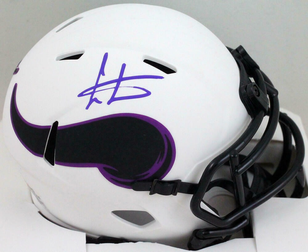 Cris Carter Autographed Vikings Lunar Speed Mini Helmet- JSA W *Purple This is a Cris Carter of the Minnesota Vikings hand autographed Riddell Football Lunar Speed Mini Helmet. This item has a Authentication, which comes with a numbered sticker and a matching Certificate of Authenticity. You can view this item on the Authentication website, it shows when and where the item was signed. It was signed either at a public autograph appearance or a private signing. This is a stock photo of the item. Although you may not receive this exact item, the item you receive is virtually identical, brand new, and in great shape.