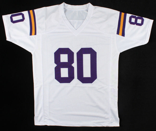 Custom on-field style jersey. Everything is sewn on, size XL. Has been hand-signed by Cris Carter (HOF).The lot / autograph(s) includes an official Schwartz Sports Hologram and matching COA for authenticity purposes.Authentication: Schwartz Sports COA