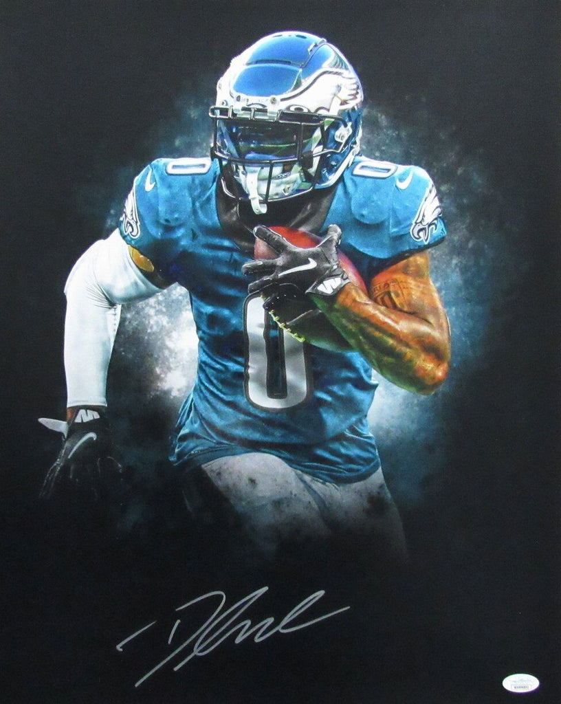D'Andre Swift Autographed 16x20 Photo Philadelphia Eagles. This photo is authenticated by JSA and includes their Tamper-proof Hologram Sticker and Certificate of Authenticity.