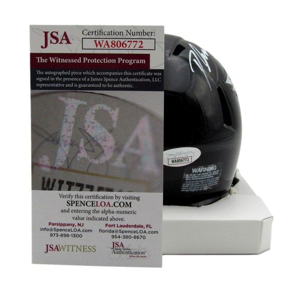 D'Andre Swift Autographed Black Speed Mini Football Helmet Philadelphia Eagles. This helmet is authenticated by JSA and includes their Tamper-proof Hologram Sticker and Certificate of Authenticity.