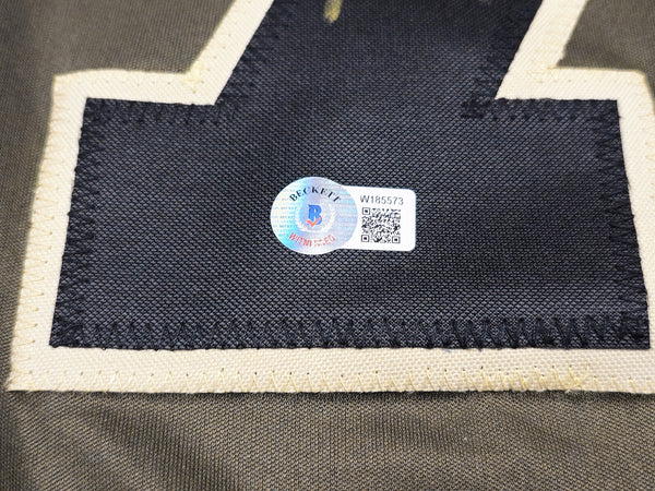 This is an Army Green Jersey that has been hand signed by Trevon Diggs. This is a custom jersey with no name brand. The approximate size is XL. It has nice sewn in name and numbers. This item has been witnessed and certified authentic by Beckett Authentication (BAS) and comes with their tamper-proof witness sticker.