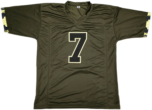 This is an Army Green Jersey that has been hand signed by Trevon Diggs. This is a custom jersey with no name brand. The approximate size is XL. It has nice sewn in name and numbers. This item has been witnessed and certified authentic by PSA/DNA and comes with their tamper-proof sticker.