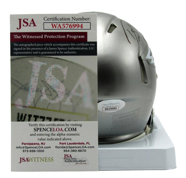 Darius Slay Autographed Silver Flash Alternate Mini Football Helmet Philadelphia Eagles. This helmet is authenticated by JSA and includes their Tamper-proof Hologram Sticker and Certificate of Authenticity.